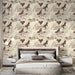 Los tonos de beige y marrón aportan calidez y sofisticación, haciendo que este papel pintado sea ideal para un dormitorio o sala de estar. La suavidad del fondo resalta los detalles de los patrones florales, creando un efecto relajante y acogedor.