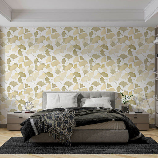 WonderMuralNuestro Papel pintado premium presenta un delicado patrón de hojas doradas y neutrales sobre un fondo claro, creando un ambiente cálido y acogedor....