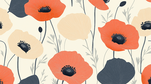 Ver todos los detallesPapel pintado amapolas | Patrón floral con amapolas naranjas y crema sobre un fondo claro