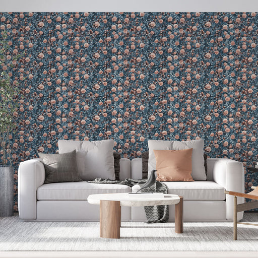 WonderMuralEste papel pintado presenta un refinado patrón floral con flores en tonos pastel sobre un fondo azul marino, creando una atmósfera elegante y relaj...