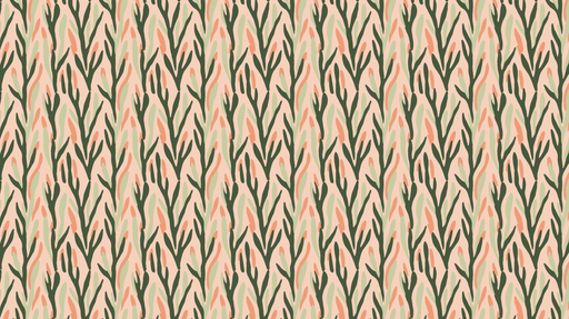 WonderMuralDescubre nuestro papel pintado con un patrón de hojas estilizadas, que se elevan en delicados tonos de verde, rosa y crema sobre un suave fondo pas...