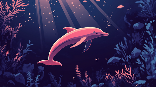Ver todos los detallesPapel pintado delfin | Un delfín rosa evolucionando en un fondo marino mágico
