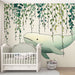 Nuestro papel pintado mural ilustra una serena ballena nadando a través de una cortina de verdes hojas, creando una atmósfera de calma y tranquilidad. Los tonos suaves y pasteles aportan un toque de frescura manteniendo la elegancia, convirtiéndolo en una excelente opción para espacios de vida o relajación.