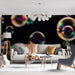 Descubra nuestro cautivador papel pintado mural con brillantes burbujas de jabón flotando en el aire. Cada burbuja está adornada con reflejos multicolores que crean un ambiente mágico y dinámico, perfecto para iluminar cualquier habitación.