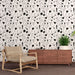 El contraste entre los patrones negros y el fondo blanco aporta luminosidad a la habitación al tiempo que añade un toque de sofisticación. Este papel pintado encaja perfectamente en varios estilos de decoración, desde interiores minimalistas hasta atmósferas más clásicas.