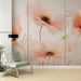 Este papel pintado presenta un hermoso patrón de flores rosadas con contornos fluidos, adornado con delicados toques dorados que cautivan la vista. Los pétalos translúcidos en tonos de rosa crean una atmósfera suave y elegante, mientras que el fondo claro ofrece un telón de fondo relajante que realza el diseño floral.