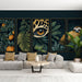 Nuestro papel pintado presenta una composición única de patrones animales y florales, destacando un perezoso, un ojo de jaguar y deliciosas naranjas, todo rodeado de ricas hojas tropicales. Los colores vibrantes de las naranjas y la profundidad contrastante de las hojas crean un ambiente que es tanto cálido como intrigante.