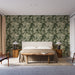 Papel pintado de follaje lujoso | Patrón de follaje verde con delicadas flores