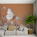 Papel pintado mariposa y flores | Ilustraciones delicadas de una mariposa sobre un fondo naranja