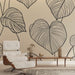Papel pintado de hojas minimalistas | Patrón de hojas lineales con fondo suave