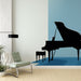 Este papel pintado mural destaca una elegante silueta de piano negro sobre un fondo de suaves tonos azules pastel y blancos. El diseño minimalista crea un ambiente artístico y refinado, perfecto para amantes de la música y estéticas contemporáneas.