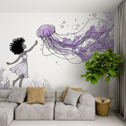 WonderMuralSee ilus fototapeet avab lummava veemaailma, kus hõljuvad meduusid rahustavates violetsetes toonides. Noore tüdruku graatsiline siluett, kes tõuseb...