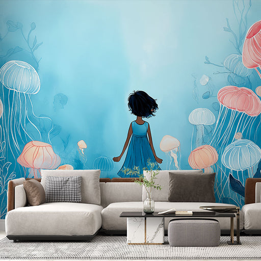 WonderMuralSee seinapilt pakub võluvat veealust maastikku, mida asustavad õrnad meduusid sinistes toonides, luues rahuliku ja maagilise atmosfääri. Elegantne ...