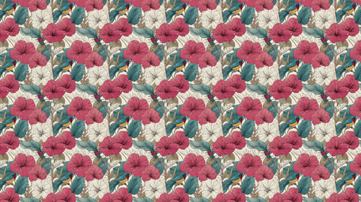 WonderMuralSee tapeet on suurepärase troopiliste lillede mustriga, näidates kauneid hibiski õisi roosas ja sinises toonis, mida kaunistavad kuldse mere täheke...