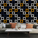 Lisage oma interjöörile kaasaegsust meie geomeetrilise fototapeediga mitmevärviliste plaatidega. Selle mustrid mustade, valgete, oranžide ja siniste ruutude kujul loovad dünaamilise ja kaasaegse visuaalse efekti.