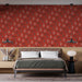 See sein fototapeedi graafika on julged geomeetrilised mustrid elaval punasel taustal. Mustrid hõlmavad erinevaid kujundeid, nagu ringid, jooned ja sik-sakid, kontrastsetes värvides nagu sinine, roosa ja must.