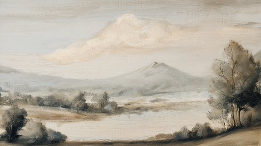 WonderMuralSee seinamaaling toob esile üleva loodusmaastiku, mis on maalitud õlis, kus mäed kerkivad udusesse horisondi. Neutraalsed toonid beežist hallini lo...