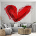 See seinamaalingus on elavpunase südamega, millele on maalitud abstraktsed dünaamilised pintslitõmbed. Intensiivse punase struktuurne ja vedel efekt loob kauni kontrasti puhta valge taustaga, luues julge ja emotsionaalse illustratsiooni.