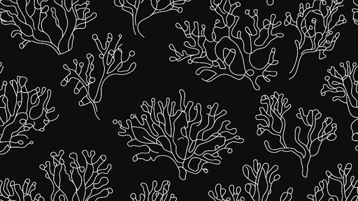 WonderMuralSee seinamaalingul on elegantne korallimuster, mis on joonistatud valgete joontega, eristudes sügava musta tausta vastu. Selle minimalistliku disai...