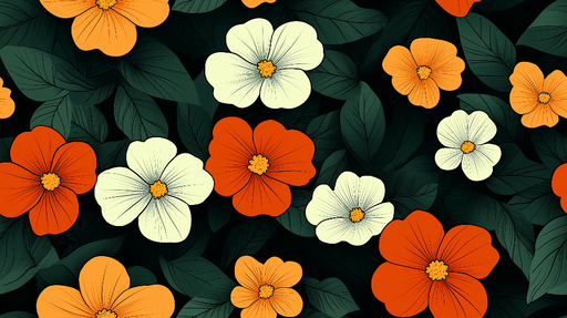 WonderMuralSee seinamaalingul on dünaamiline muster värvilistest lilledest mustal taustal, luues silmatorkava kontrasti. Elavad punase, kollase ja oranži toon...