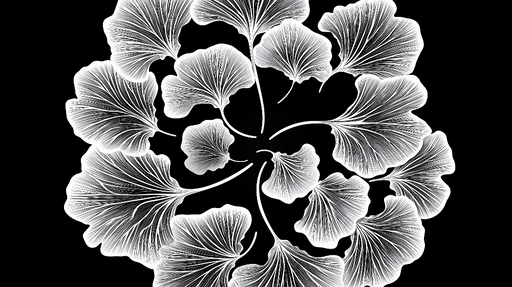 Vaata täielikke üksikasjuFototapeet ginkgo biloba | Elegantsete ginkgo lehemustrid mustal taustal