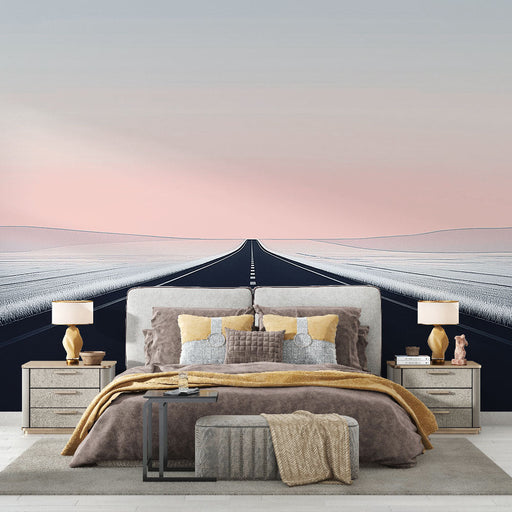 WonderMuralSee tapeet kujutab endast puhast minimalistlikku maastikku, kus must tee ulatub horisondini, millega kaasneb pehme roosa ja sinise varjundiga taeva...