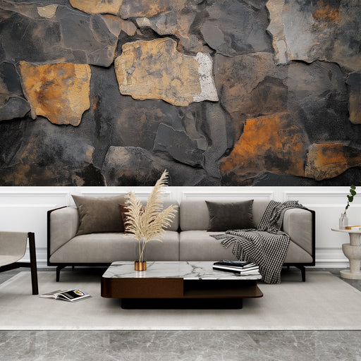WonderMuralSee seinamaalingul on suurepärane looduskivi muster, mis ühendab tumedad toonid ja oranžid esiletõstmised kaasaegseks ja elegantseks kaunistuseks. ...