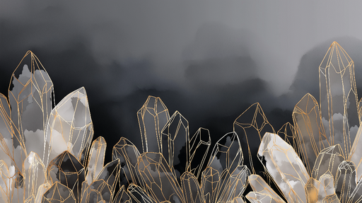 WonderMuralSee tapeet pakub võluvat mustrit geomeetriliste kristallidega, peenelt joonistatud kuldsete kontuuridega, mis paistavad silma musta taustaga pilvis...