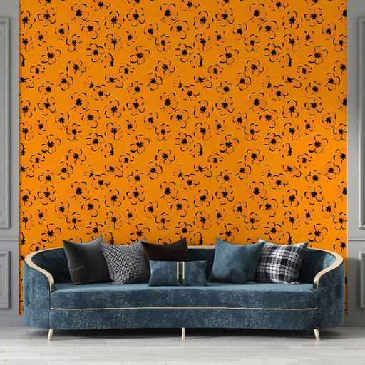 WonderMuralSee tapeet eristub oma erksa oranži taustaga, millel paistab silma elegantne väikeste mustade õite muster. Õrnad õied lisavad ruumile elegantsi puu...