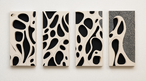WonderMuralSee tapeedil on orgaanilised reljeefsed mustrid, mis liiguvad pehmuse ja kaasaegsuse vahel võimsa musta taustal. Vedelad kujundid, mis mängivad tüh...
