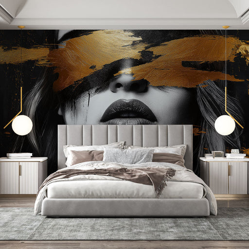 Vaata täielikke üksikasjuMuraaltapeet kunstiline nägu | Stiilne portree kuldsete aktsentidega