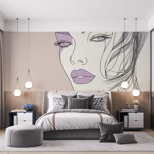Vaata täielikke üksikasjuMuraaltapeet abstraktne nägu | Minimalistlik naisenäo reljeefne disain