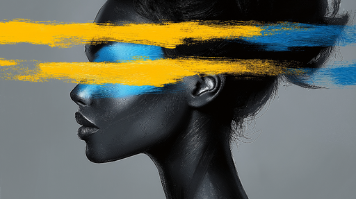 WonderMuralMeie fototapeet on kaasahaarava abstraktse disainiga, mille keskmes on stiliseeritud nägu, mida osaliselt varjutavad värvilised triibud. Musta ja h...