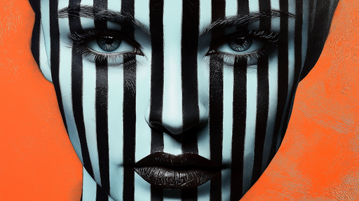Vaata täielikke üksikasjuSeinapiltapeet | Stiiliseeritud nägu julgete triipude ja erksa oranži taustaga