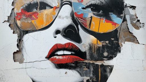 WonderMuralSee seinamaalingul on muljetavaldav popkunsti illustratsioon stiliseeritud naisnäost, mida rõhutavad erksad punased prillid ja taust täis erksaid v...