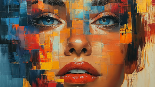 WonderMuralSee kunstiline fototapeet omab lummavat stiilistatud nägu, mis koosneb erksatest värviplokkidest ja rikkalikest tekstuuridest. Siniste, oranžide ja...