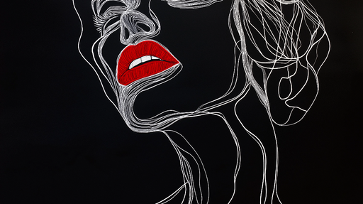 WonderMuralSee kaasahaarav fototapeet näitab stiilise naistepordi, kus õrnad valged jooned joonistavad näo kontuure sügava musta tausta peal. Eriti punased hu...