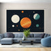 Meie seinamaalingu tapeet kujutab stiliseeritud universumit koos planeetidega erksates toonides, esile tõstes kuldseid, siniseid ja valgeid toone tumedal taustal. Planeetide siledad kujundid ja erksad värvid loovad atmosfääri, mis on ühtaegu mänguline ja salapärane, ideaalne neile, kes unistavad kosmose seiklustest.