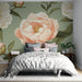 See õrnalt joonistatud õieleline foto tapeet sisaldab suurepärast seeriat täies õies olevatest pojengidest, kus pehmed roosad ja kreemjad valged toonid õitsevad pehmel rohelisel taustal. Kroonlehtede detailid koos kunstilise kujutamisega emakate ja varte kohta loovad peaaegu katsutava tekstuuri, nagu saaks lilled sõrmede all pehmust tunda.