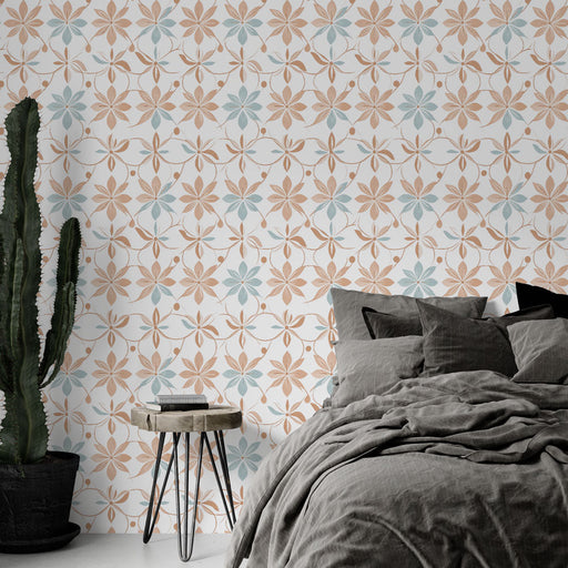 WonderMuralSee shabby chic fototapeet omab kaunist õie mustrit sinistes, roosades ja oranžides toonides. Kreemjas taust esile toob mustrid, luues soojuse ja k...