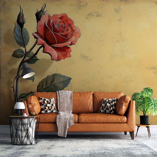 WonderMuralSee seinamaaling rõhutab suurepärast punast roosi, mis on kujutatud kunstilises stiilis, mis ühendab kaasaegsed ja vintage puudutused. Tekstuuriga ...