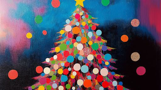 WonderMuralSee unikaalne foto tapeet omab stiliseeritud jõulupuud, mis on kaunistatud erksate ja rõõmsate värvidega. Värvilised ringid, mis sümboliseerivad jõ...