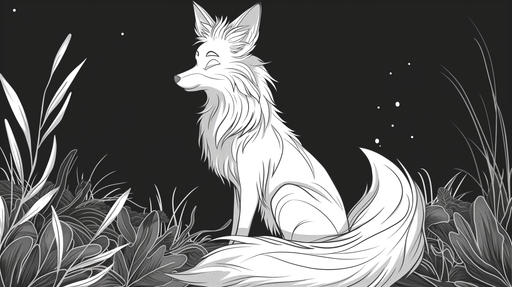 WonderMuralAvasta illustratsioon Mystic Fox, mustvalge töö, mis jäädvustab võluva rebase maalilises looduslikus keskkonnas. Õhukeste joonte ja peene varjundi...