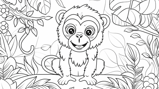 WonderMuralAvasta see armas fototapeet naeratava väikese ahviga, keda ümbritsevad eksootilised lehed ja lilled. Selged jooned ja hoolikad detailid toovad män...