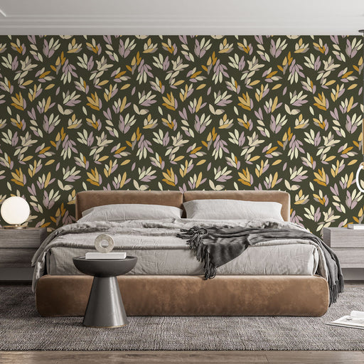 Vaata täielikke üksikasjuFototapeet värviliste lehtedega | Lehemuster tumedal taustal