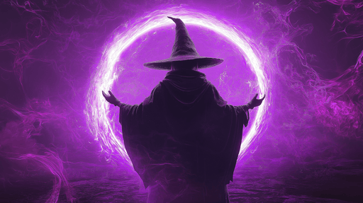 WonderMuralAvastage meie kaasahaarav seinamaaling, mis kujutab salapärast maagi, seismas helendava lilla maagilise ringi ees. See võluv disain kutsub esile ma...
