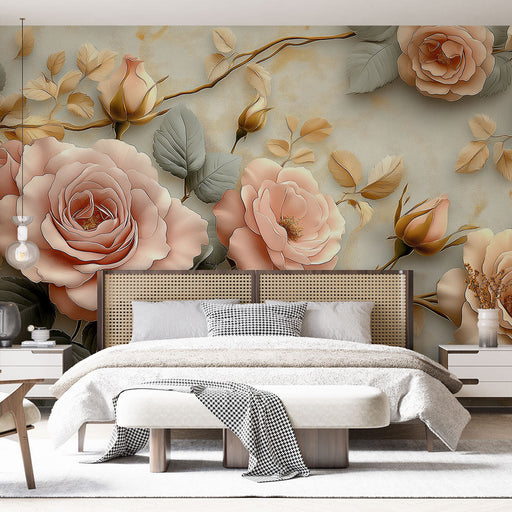 WonderMuralSee seinamaaling rõhutab suurepärast rooside mustrit soojades toonides, alates virsikust kuni kullani, mis lisavad igasse ruumi puudutuse romantism...