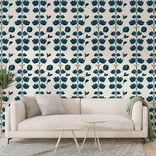 WonderMuralSee tapeet on ilusa mustriga beezide õite õitsemisest sügava mereväe taustal, luues paeluva ja elegantse kontrasti. Beežide toonide peened nüansid ...