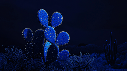 WonderMuralSee lummav foto tapeet näitab öist kaktust, kus kaktuste elegantsete siluettide tumedad toonid eristuvad erksinise tausta vastu. Okaste peened deta...