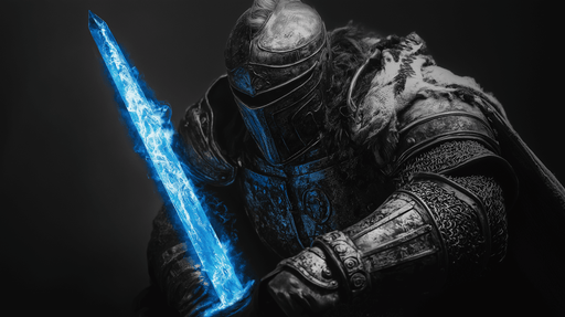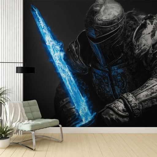 WonderMuralAvastage meie köitev seinamaaling, millel on kujutatud müstiline rüütel, kes kannab detailset raudrüüd ja hoiab käes mõõka, millel on särav sinine ...